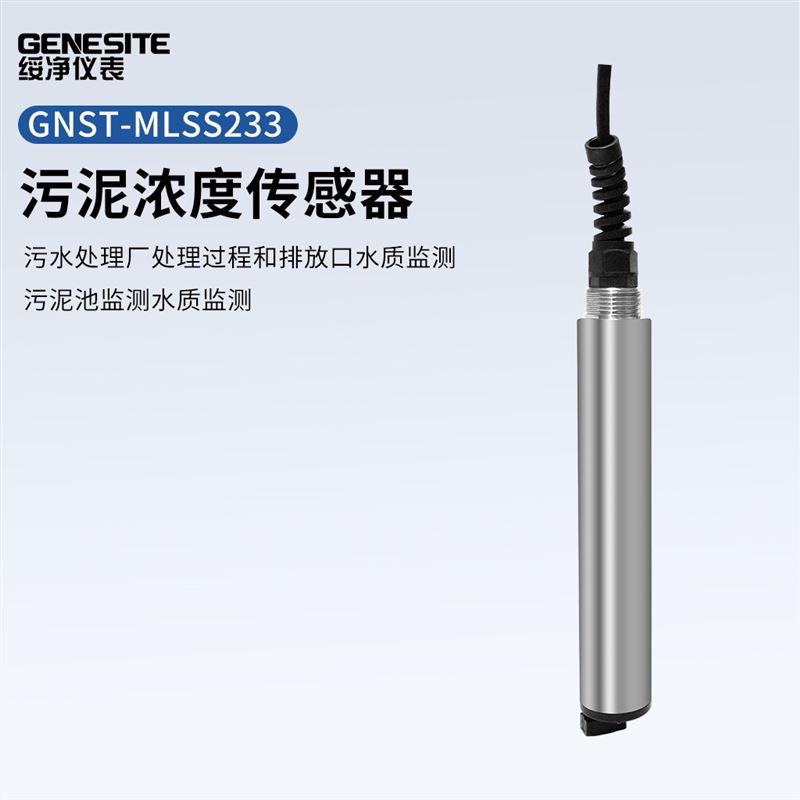 污泥濃度在線傳感器采用紅外光散射法,即入射光進入水體后在污泥表面發生光散射,在與入射光呈一定角度方向的光路上檢測散射光強度,通過散射光強度和污泥濃度比例關系,獲得水體中污泥濃度。